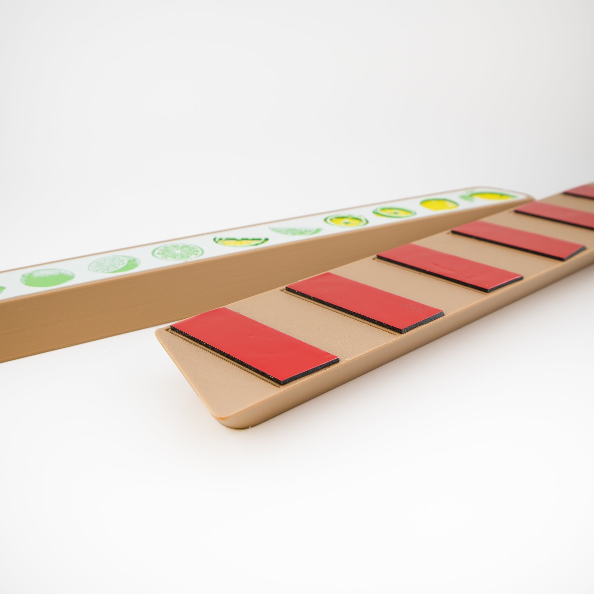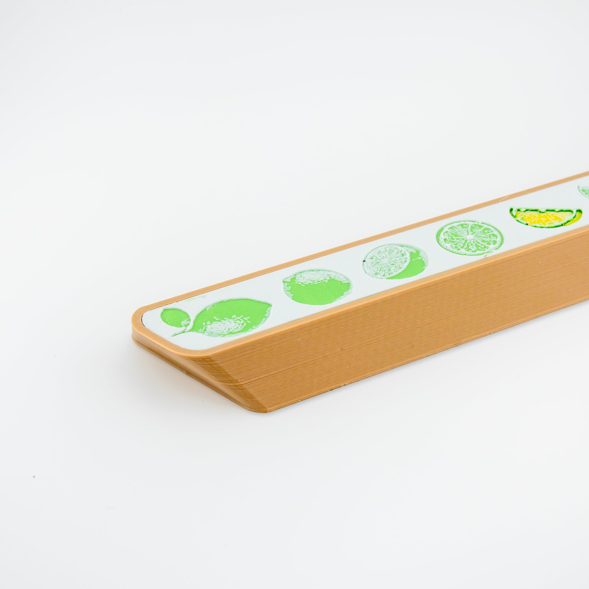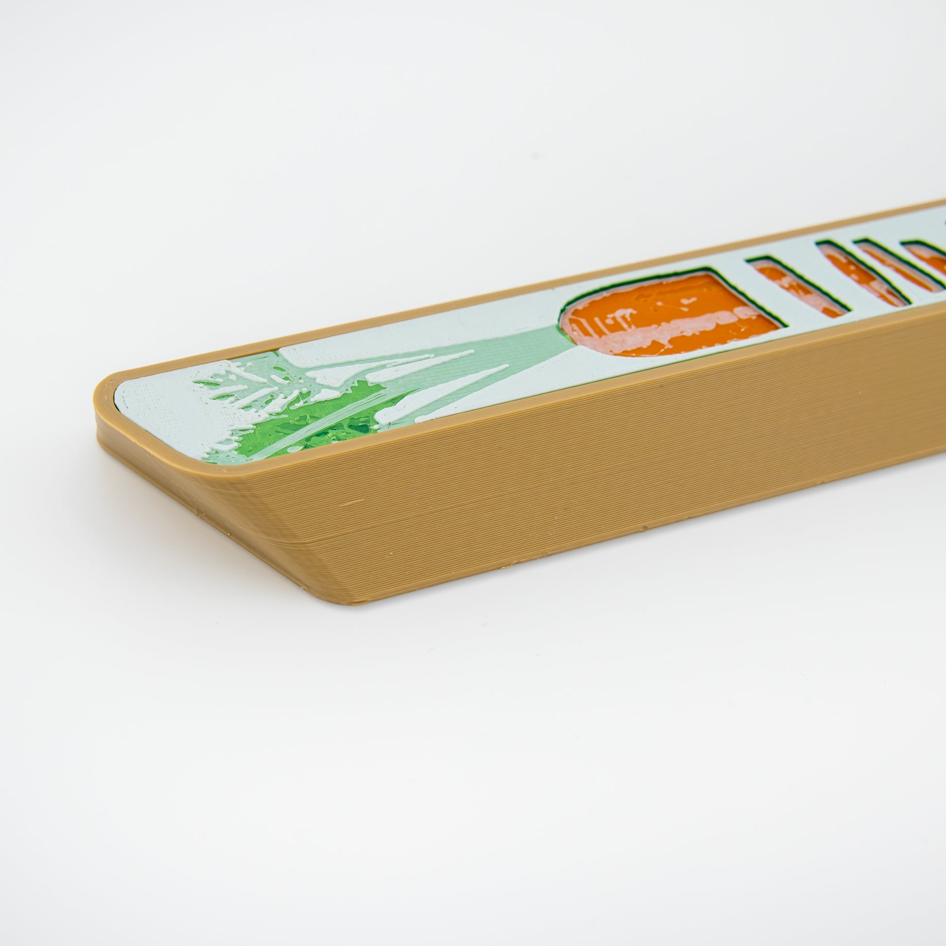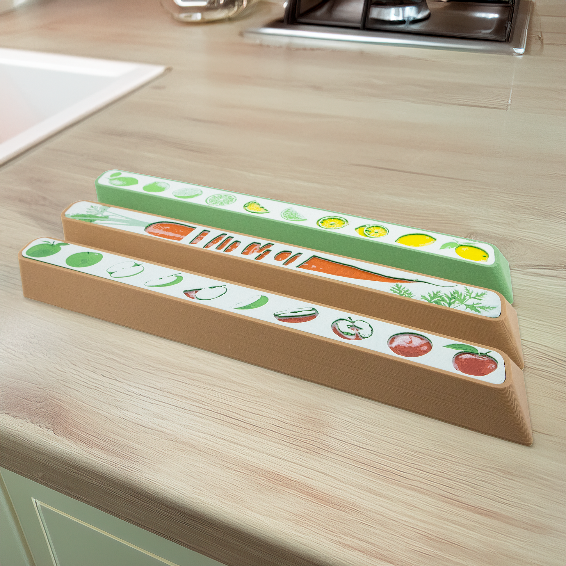 הוא מתאים לתלייה של 5 עד סכינים, כל פס משלב גרפיקה צבעונית של פירות וירקות. בשלושה עיצובים לבחירה: